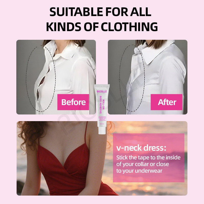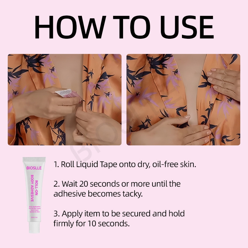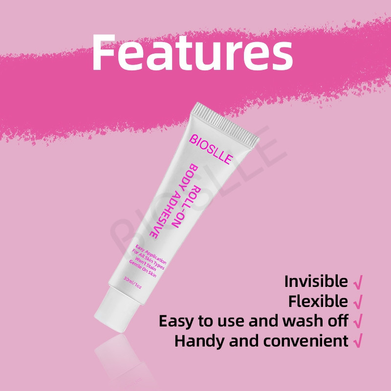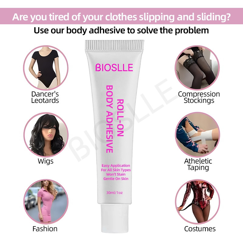 BIOSLLE Body Glue Adhesive is skin-safe, waterproof, and perfect for garments, dresses, costumes, and stage use.