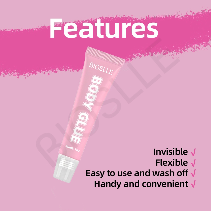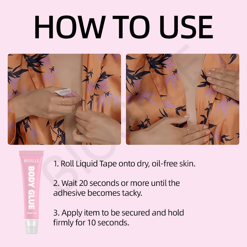 BIOSLLE Body Glue Adhesive is skin-safe, waterproof, and perfect for garments, dresses, costumes, and stage use.