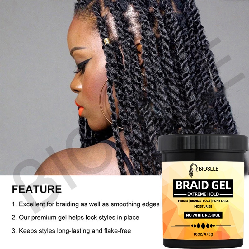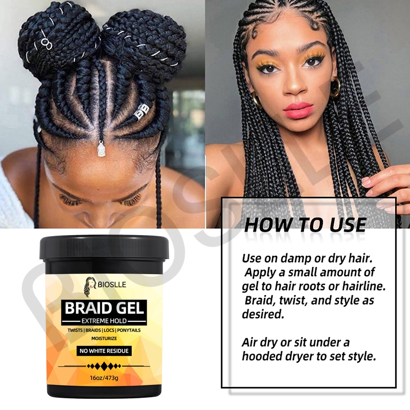 Keeps styles long-lasting and flake-free. Our braid gel helps lock styles in place.